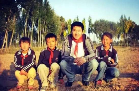 他在偏远地区建立希望小学,戴着红领巾和学生合影。