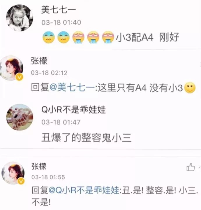 面对不好的声音,她接受,但是触及原则的问题,她却寸步不让,不管什么时候别人说她是“小三”,她都会强硬地反击:“丑,是!整容,是!小三,不是!”