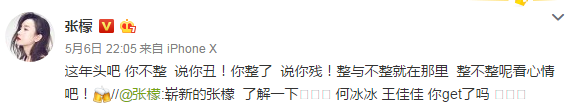 但面对大家的冷嘲热讽,她的第一反应却不是生气,而是坦荡地表明了自己的立场:“这年头吧,你不整,说你丑!你整了,说你残!整不整就在那里,整不整呢看心情吧!”