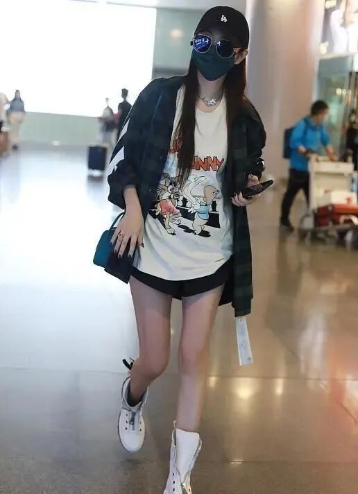 连出席活动,也都会特别配备长袖外套遮挡手臂线条,足以看出安以轩其实还挺了解自己的身材特点的,不过私下自然还是怎样舒服怎样穿,这一随性,果然就暴露了身材缺点。