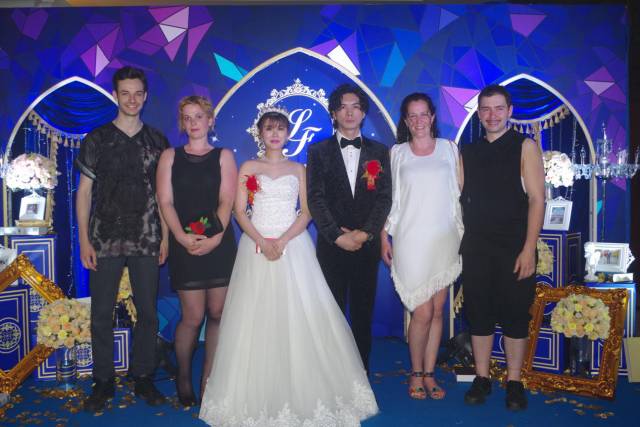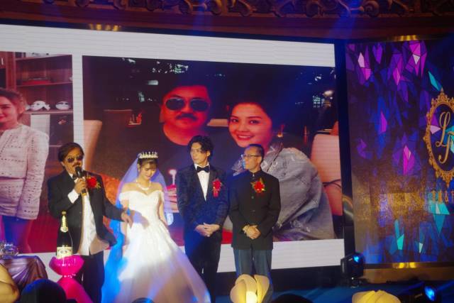 明星阿SA(蔡卓妍)的爸爸和中国好爸爸兔爸还到场来祝福这对新人并为他们证婚!