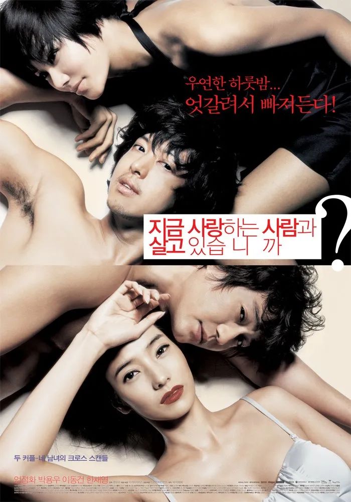 [现在是和相爱的人一起生活吗] 지금 사랑하는 사람과 살고 있습니까? (2007)导演:郑允秀演员:严贞花/朴勇宇/韩彩英/李东健分级:12岁以上可以观看 一场四边形对角线交叉的出轨事故,一个充满风险刺激的换妻换夫游戏色像:两场情挑是以平行蒙太奇的方式处理的。两对夫妻,一对面临七年之痒,一对几乎没有交流情话: “现在你对我还有激情吗?看到我还会像刚开始那样心跳吗?”一次聚会,他们出现交集,在之后的发展中逐渐走向交叉路口,终于在同一个夜晚迸发出危险的火花。 严贞花一如既往的丰艳十足,将李东健从拳击场一直勾引到床上。两人的调情完全仰仗肉搏的力度,每一个动作大张旗鼓,充满征服的仪式感。韩彩英和朴勇宇则属于克制到极致后的报复性反弹,如洪水猛兽般以肉体的交织刻画出一种带有毁灭性的决绝意味。