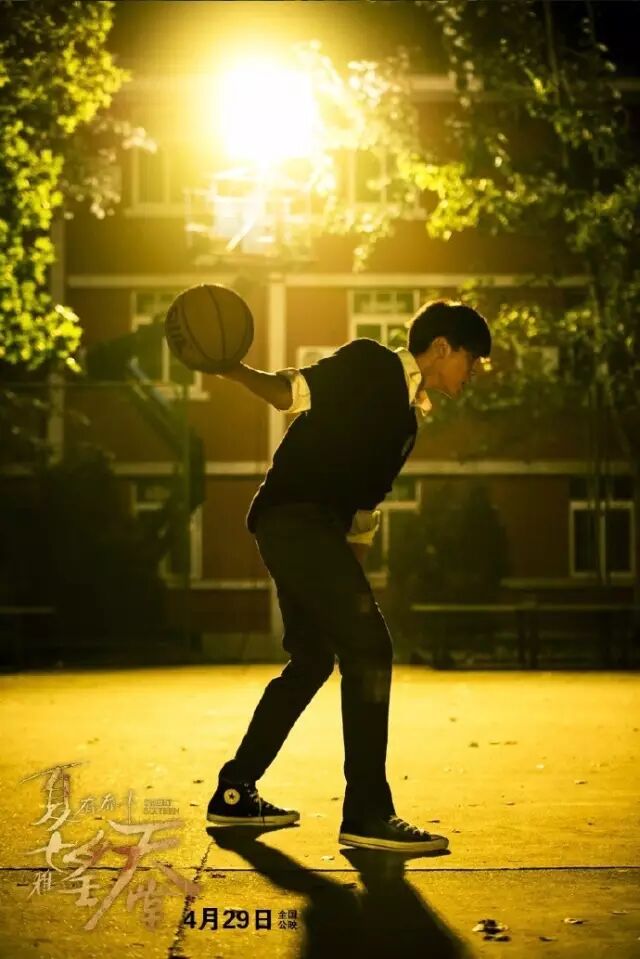 剧照中,吴亦凡所饰演的夏木独自一人在路灯下打着篮球,他的身影在昏黄的灯光下拉得悠长。