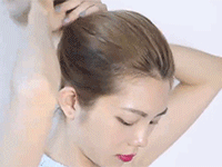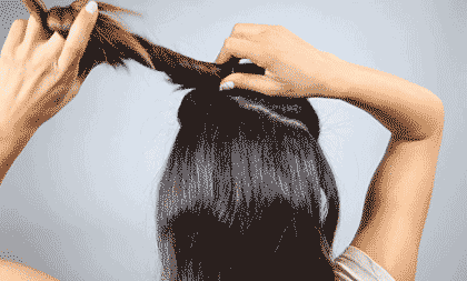 step1:用手划过耳际位置,抓取耳边和头顶部分的头发。