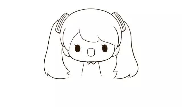 首先画出初音未来的脸型和耳朵,因为是简笔画,偏向于可爱,所以脸型偏圆。