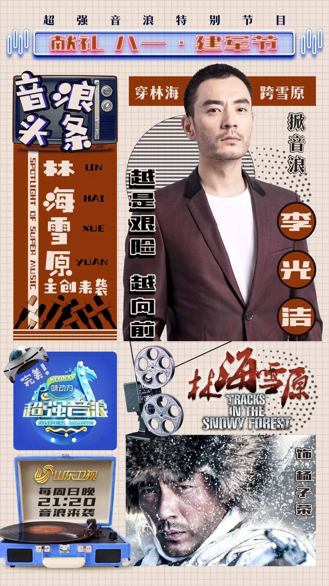 整整两期节目,《超强音浪》以“献礼建军90周年”为主题,对于《林海雪原》这部剧从主创到背后故事都进行了系统的回顾和梳理(节目组甚至在每个演员在节目表现的卡通特效和花字特效后,结合剧情和角色进行了混剪),融入了更多电视剧和建军节献礼元素。如:沙景昌、大秦子、王建新、王奎荣、毕彦君、程雍等老戏骨们集体献唱《我们是工农子弟兵》;刘劲老师真情朗诵;金星、王建新首次合唱《林海雪原》插曲;北京轻骑兵爱乐合唱团合唱《中国人民解放军进行曲》;演员张睿、李光洁分别献唱《我的祖国》和《谁不说俺家乡好》;邀请当年杨子荣的战友——91岁的高森老人和东北民主联军牡丹江军区二团团长王敬之的遗孀——88岁的王亚民老人,与他们一同追忆往事,诉说历史。