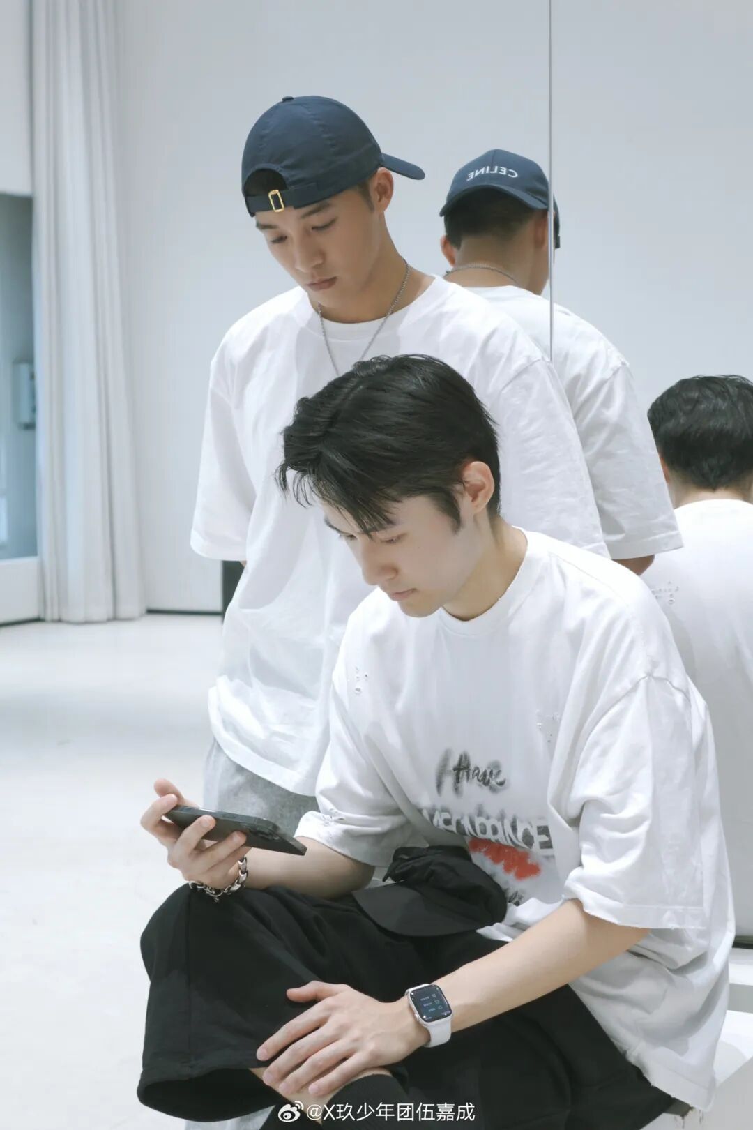伍嘉成:这是我们组合的第一首歌,它难度也是极高的,原本九个人分part现在变成两个人,加上唱跳又更难一些,但我们还是想用这首歌作为开场。