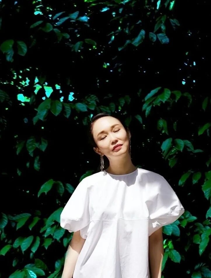 范文芳这身造型穿着了一件基础的白罩裙,泡泡袖作为唯一的修饰性元素奠定了造型的复古基调。在穿着简单的时候,妆容和配饰就要修饰性强一些,选择存在感更强的耳饰作为点缀会更有摩登范。