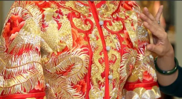 一件纯手工的龙凤褂从画稿到完成制作需要三百多个工序。为求图案对称,一般由一人完成刺绣。绣工的手上不能出汗,以免玷污了布料。