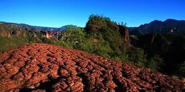 实际上是因为这里的岩层含有大量的氧化铁的缘故,所以呈现红色;又因为是砂岩,容易被风雨流水侵蚀,会形成形态各异的山峰。由于这种地貌最早发现于广东的丹霞山,所以就被称为丹霞地貌。