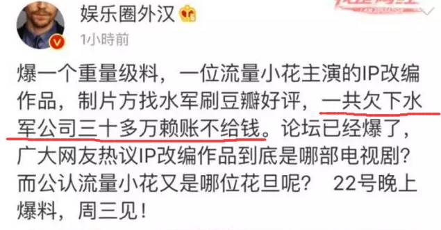 一直以来无论是明星还是剧方为了宣传总是会雇些水军,但因为水军这东西还是不太严谨,酿成糗事就成了常有的。