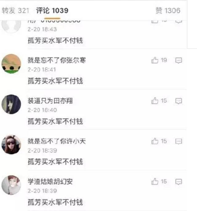 不过现在的网友都聪明的很,即使水军没走错片场,看到不符合你人气的评论和转发量再看到评论下面各种模板式的夸奖,你请没请水军也一目了然了。