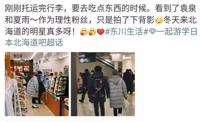 不久前,还有网友在某个社交平台上面晒出了自己偶遇袁泉和夏雨的照片。据悉,这位网友是在日本北海道偶遇这两个人的。