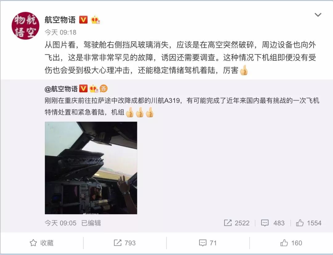 有航空界专业人士指出,这次事故处置实属不易,充分体现了航班驾驶员的高超技术和专业素养。