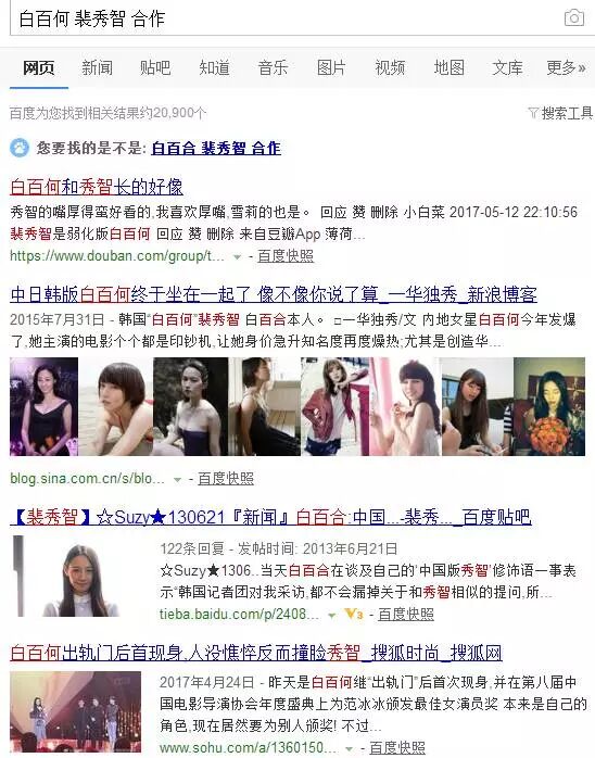 可无论是搜索【白百何】+【裴秀智】出现的148000个链接: