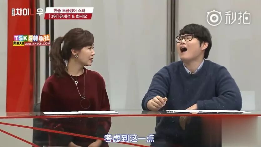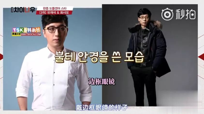 然后就到了刘在石和华少这一组120%面容相似的主持人了,先是说戴眼镜的样子蜜汁相像。
