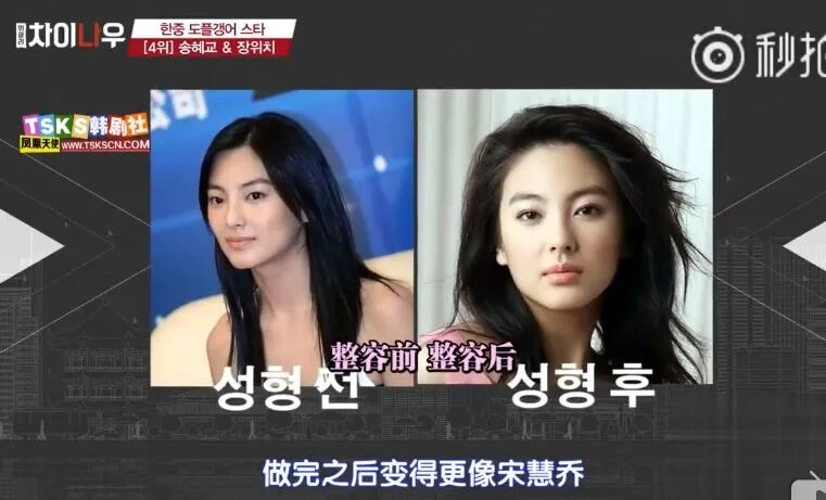还用了张雨绮做了双眼皮手术的前后变化照片来说明,越来越像宋慧乔。