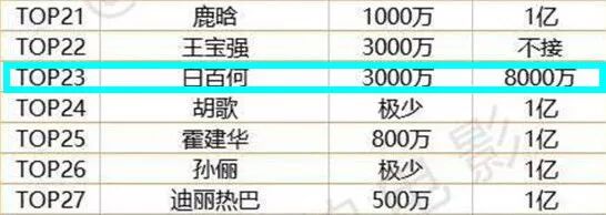 而受了小狼狗事件影响只能暂降片酬的白百何,每部戏也有8000W的报价,那个50W一部的…是4年前的报价吗?