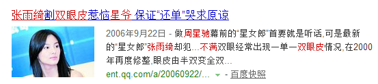 但是妆姐明明记得那阵子的新闻都是在说,张雨绮在拍摄《长江七号》中途去做了双眼皮引发星爷不满,所以又做了修复的项目变回单眼皮。
