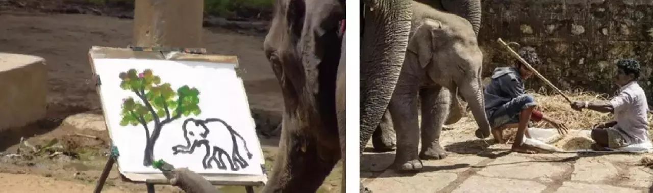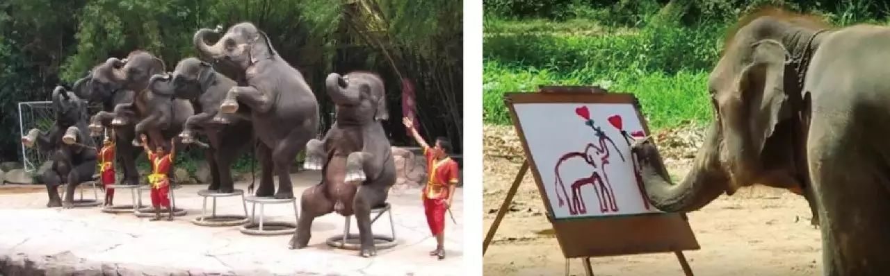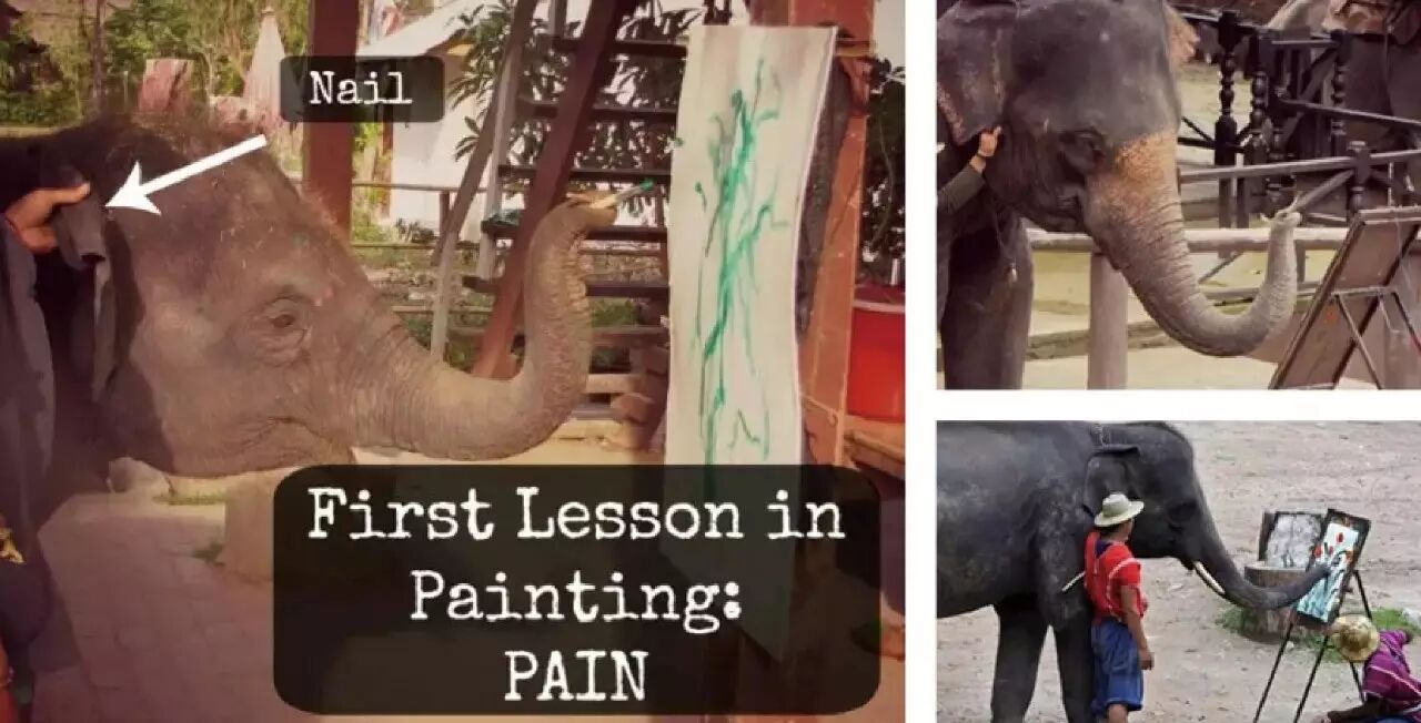 和骑象观光产业一样,用来作画的小象也要经历同样的折磨。