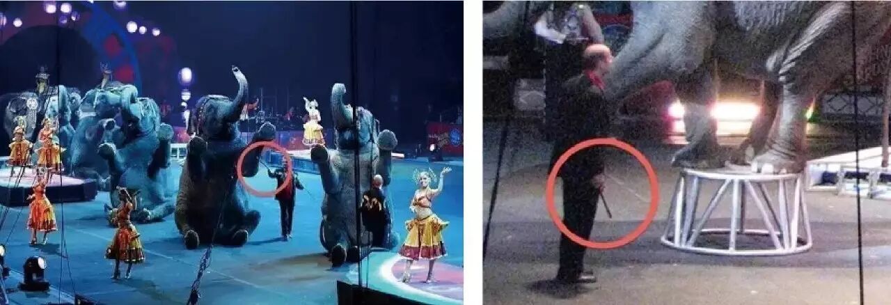 至于其他的大象表演,背后也全都隐藏了看不见的疼痛和鲜血,驯象师手中的尖钩无处不在。