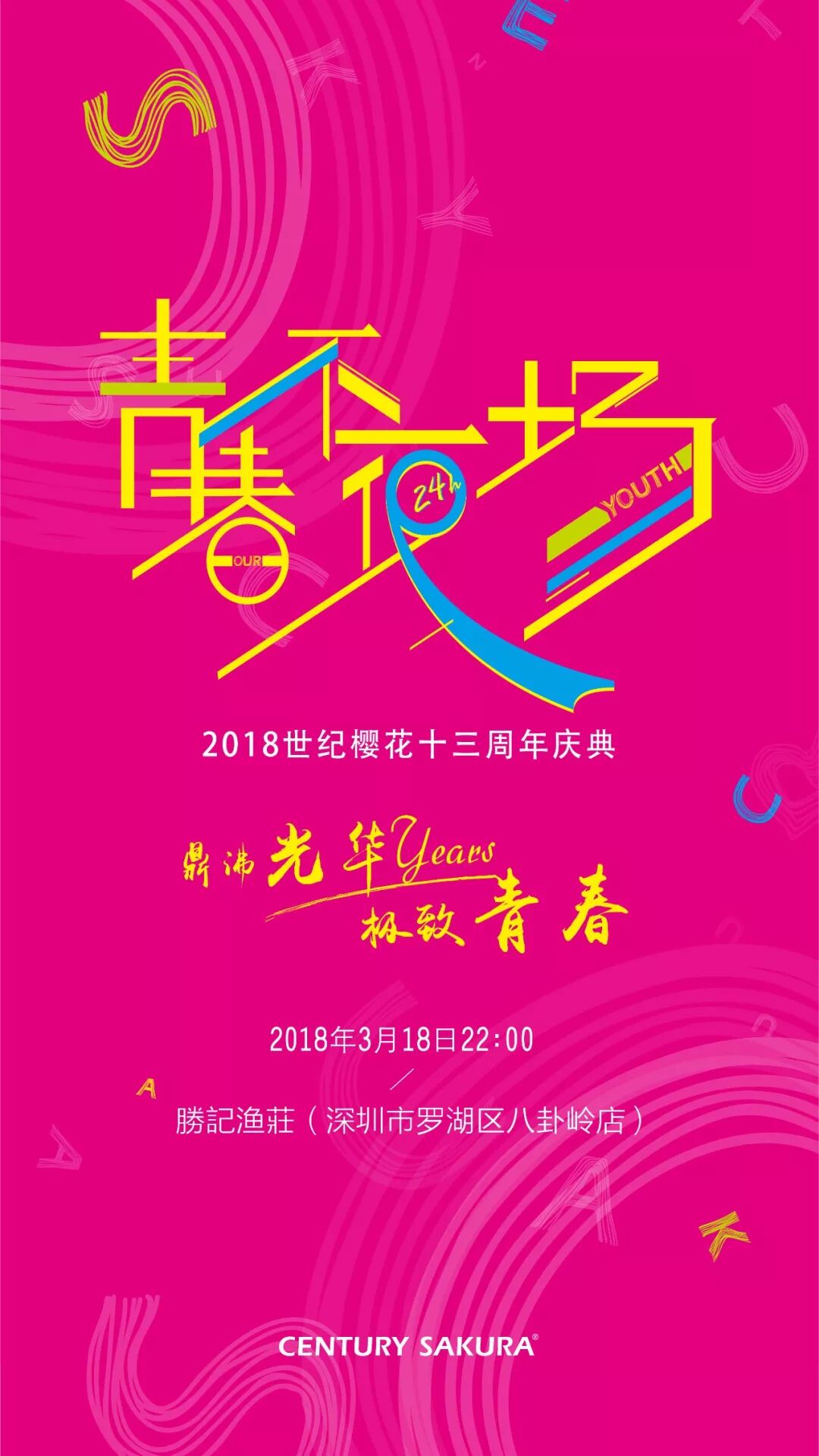 2018年3月18日,『青春不夜场』——2018世纪樱花十三周年庆典,选址深圳老牌粤式餐厅勝記魚莊,带给宾客一场集“市井”、“时髦”、“鲜活”、“生猛”于一体的潮流晚宴。对于时尚教父TONY先生而言,无论场地在高雅之堂或市井之外,活动都可以保持时尚的高水准。而海鲜的生猛与活力,更代表着世纪樱花的鲜活创意,永远值得期待。