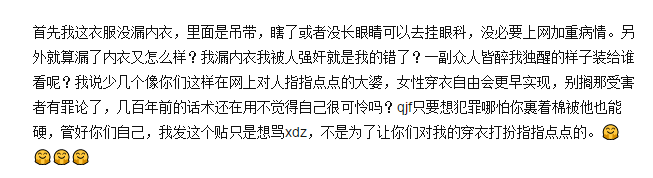 范冰冰中学被60个男生“偷窥”,女星惨遭“精液手”:漂亮的女生,就活该被骂? 遇见番茄 内地女星 2021-05-15 12:21:02 7218 创作不易,用心坚持,欢迎请BaGua喝几杯爱心咖啡!打赏并支持本文 打赏并删除本文 点击关注遇见番茄,置顶公众号回复“午安”,送你一张特别推送,祝午安来源:小明他爸ID:xmtaba范冰冰被60多人“偷窥”女团惨遭“精液”手长得太漂亮的女生,都受过什么样的“优待?”范冰冰的母亲曾在一次访谈里说过这样的烦恼。范冰冰第一天去初中报道,就引起了不小的轰动。上午传来学校里新来了一个校花,下午一群人就躲在教室后偷看。被60多名男生聚众围观,场面如此浩大,大家可以想象一下。后来,范冰冰妈妈被老师叫到了学校。原以为是学习上的问题,没想到老师见了面第一句话就是:“范冰冰现在是需要重点保护的对象。”老师没有教育这群男生要尊重女生,反而把错误归结到为“长得太漂亮”,如果被骚扰,那就是父母没有保护好。无独有偶,之前刘亦菲在广州参加某电影宣传活动时,与粉丝的互动环节中,刘亦菲被一名陌生男子强抱并扑倒。视频中,撞地的声音好响,听着都觉得痛。还有之前韩雪遭到裸身男粉的突然“袭击”!当时韩雪正在自己的发布会上跟粉丝打招呼,没想到一名男子就突然冲上台,欲抱住韩雪!只见此男子赤裸着上身,嘴里喊着韩雪的名字。韩雪被吓得尖叫、后退,一直被逼到了后面的展板上。日本人气偶像组合大岛优子举办握手见面会,竟然有名粉丝伸出沾满精液的手。这几年频繁发生女性被骚扰的事件,本应该心疼他们,可还有些声音令人三观破裂:你怎么看?“女生穿的太性感影响我读书了!”明爸还记得曾经看到一封啼笑皆非的“投诉信”。2018年5月15日,湖南农业大学一男生向学校图书馆写了一封投诉信。投诉什么呢?图书馆女生穿着太性感。他认为,图书馆很多女生穿着超短裙、超短裤和坎肩,露腿又露肩的行为严重影响自己学习,所以希望有关部门能够明令禁止。好笑的是,学校还立即整改,处理成功了。图书馆立刻公示了一则入馆须知:禁止女生穿吊带裙、超短裤等着装进入图书馆。并且让保安在门口拦截衣着不合格的女生。这样的通知令无数学子心寒,背后也反映出一个问题:这样的决定,是不是在告诉所有女学生,你们穿得性感就是在勾引男生呢?既然你说自己是去潜心学习的,怎么还有心思关心人家小姐姐穿的是短裙还是长裤呢?那么多男生都好好的,怎么到你这就没有办法集中注意力了呢?现实生活中,很多人习惯了对别人指手画脚,却往往忘记了自己才是问题发生的罪魁祸首。“你露内衣,不怕被强奸吗?”4月27日,豆瓣上一篇「你不怕被人强奸」的女生控诉帖子,突然引爆了网络舆论。这个女生在去公司上班之前,给自己精心打扮了一番。因为最近天气升温,她的打扮就清凉性感了一点。但也并没有过火,不过是一件薄纱外套,里衬是一件吊带背心而已。大方清纯中透露着一丝性感,看着十分养眼。却没有想到,同公司的男同事看到了女生之后,不仅对这个女孩的穿衣打扮评头论足,甚至还指指点点。而且在最后快离开的时候,还不忘半开玩笑地对她说了这样一句话:“你穿成这样来公司,不怕被人强奸吗?”人家女孩本来精心打扮一番,是为了让自己看起来更漂亮,让自己心情愉悦。可没想到到了这些腐臭之人的嘴里,居然成了勾引强奸犯的原罪。事情发生以后,女孩抑制不住自己心中的怒火,特意将这件事公布到了网上。她本以为会得到大家的支持,去不曾想,评论区留下的居然都是一片“善意的劝告”:他们或批评,或建议,或谆谆教导,希望这个女生可以改变自己的穿衣打扮。因为在他们心底里,也认为“女孩打扮性感就是为了勾引男人”。拒绝一昧隐忍长得漂亮不是你们的错难道女孩们就一定要一直隐忍吗?之前神仙姐姐刘亦菲的女王发言,让人赞叹。在访谈上,当主持人问刘亦菲,男性比较喜欢怎样的女生时。刘亦菲直接回怼了一句:我管他喜欢什么。还有之前,杨幂参加综艺的女王发言,让人拍手叫好。花花委婉地吐槽了一句大幂幂穿的裙子实在是太短了,觉得女孩子出门在外还是穿那种比较保守一点的衣服比较好。大幂幂也是个耿直的人,直接回怼“下一场会更短”。这样的回怼,也让女孩们意识到不能忽一直忍气吞声。一昧地容忍,一昧地放任,就会导致——好看与性感不是原罪,生为女人,就是原罪。如今,很多父母很想生女孩,却不敢生女孩。奇葩说辩手花希在微博上说的这段话:“如果有孩子的话我一直想要一个女儿,可是我太害怕了,我教会她的远不够应对这世间险恶”,触动了无数人。就像电影《一个母亲的复仇》里说的一句话:我教了我的女儿二十年,让她知道怎么保护自己;而你却一秒都没有教过你儿子,不要伤害他人。让我们来看看网友们的评论:网友我勒个去:女生长得漂亮就是应该接受一些非议..有舍有得,很正常。网友甜心的妈咪:唉,我现在也很惆怅,女儿长大了应该怎么保护,现在的男孩都太调皮了..网友我很无语:现实中太多这样的事了,宿舍一女生长的很漂亮,被男生恶言恶语 给嘲讽哭了。点个“赞”“在看”吧,并“分享”给家长孩子们吧!— END — 推 荐 阅 读◆作者:小明他爸,来源公众号:小明他爸(ID:xmtaba)配图来源于网络。 创作不易,用心坚持,欢迎请BaGua喝几杯爱心咖啡!打赏并支持本文 打赏并