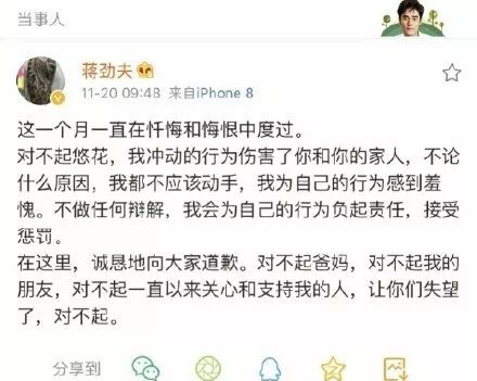 再说得刻薄点,如果蒋劲夫不是家暴,而是吸毒了、逃税了,众明星还敢发这种忆往昔的煽情小文吗?