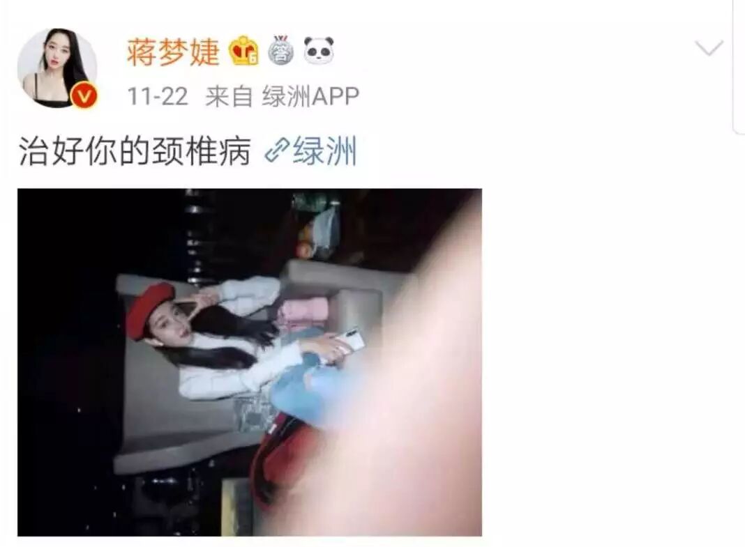 曾经无脑发微“一个巴掌拍不响”的蒋梦婕,最近的一条微博发了张倒置的照片,配文“治好你的颈椎病”。