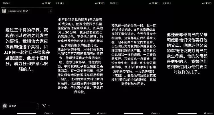 ▲蒋劲夫的现任乌拉圭女友发文指称蒋劲夫家暴