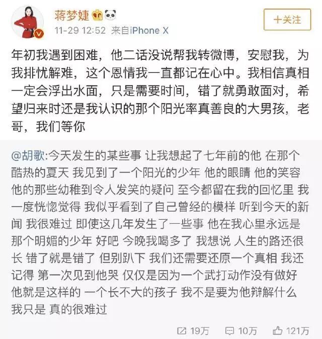 胡歌呀胡歌,如果整篇发文只是痛惜弟弟的迷失倒也说得过去,你非加上那句“我们还需要还原一个真相”干什么呢?