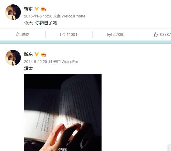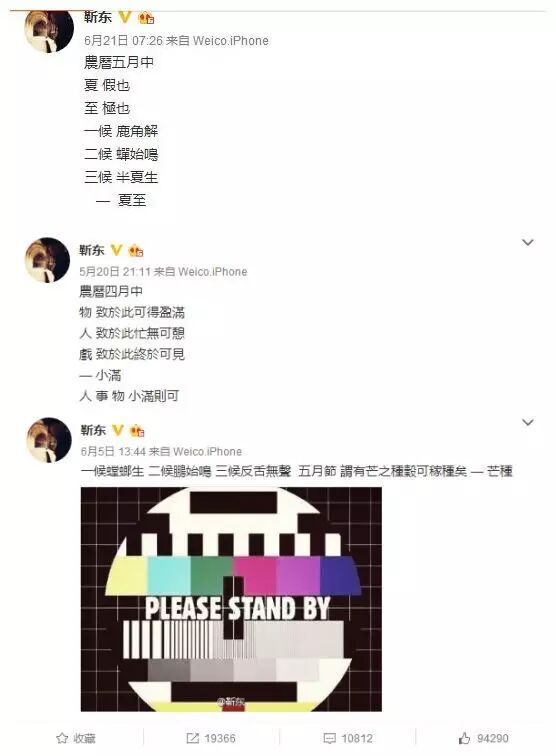 再看靳东的微博,发现他简直就是个“24节气普及大使”,一有节气就会出来科普。