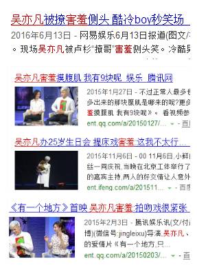 搜索”吴亦凡 害羞“可以看到各式各样的通稿,都是在不同场合的。说明”害羞“已经成了吴亦凡的标志。