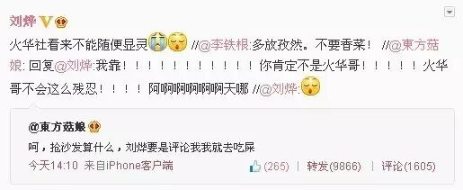 最绝的是有一次,刘烨把微博名字改成了“吉林土特产代购”,正好他当时在参加以色列驻华大使馆的活动,然后就出现了下面这一条微博↓