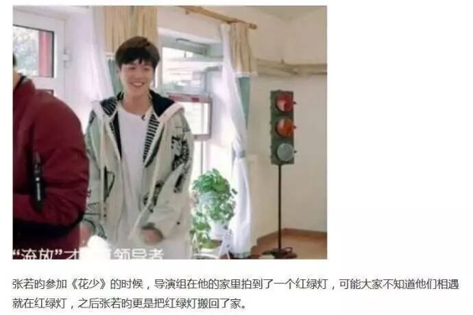 张若昀在参加《花少》时候,还曾爆料:他和她,是在交通路口遇见的。最后张若昀居然傻笑着把红绿灯扛了回家。