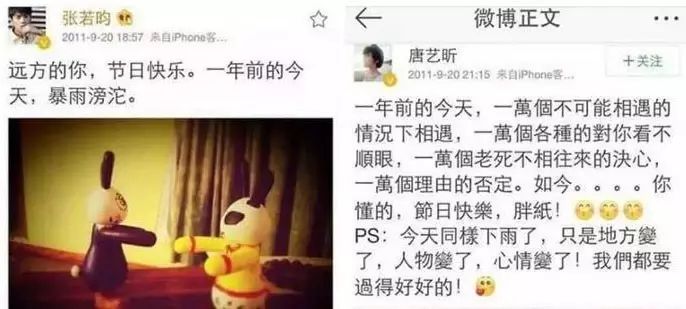 在2011年相遇纪念日,张若昀发布了一条关于“一年前的今天”的微博。