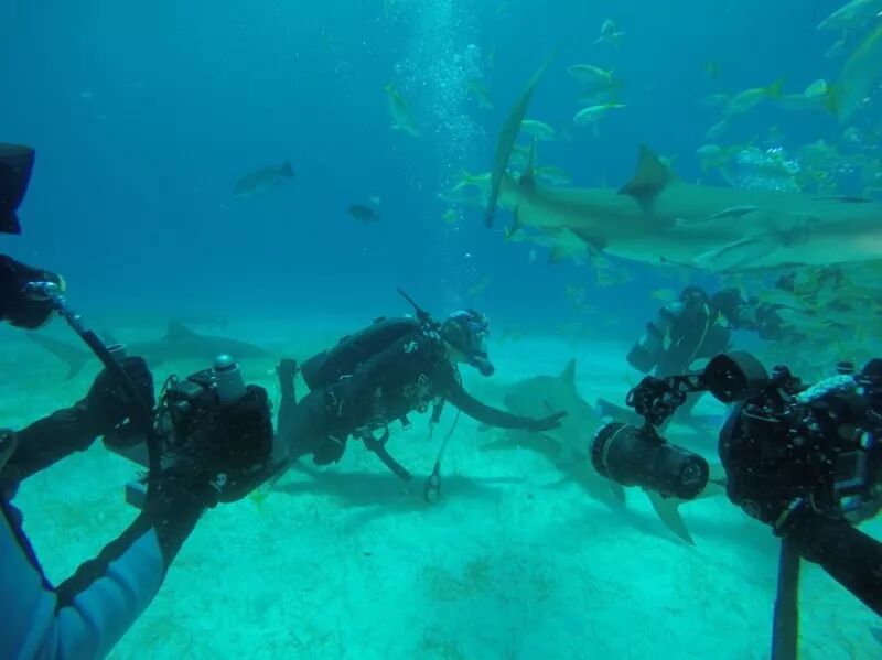 在这次拍摄中,李光洁随着拍摄团队一起深入到了巴哈马群岛,在真实的海底进行拍摄。与他们随行的船长 Jim,是一位与鲨鱼打了 30 年交道的美国鲨鱼专家,在这片海域也研究了多年。Jim 告诉李光洁,这里有一条虎鲨,他常常见到它,跟它成为了朋友,还为它取了个名字叫 Emma。“如果你见到它,也会喜欢它的。” Jim 说。