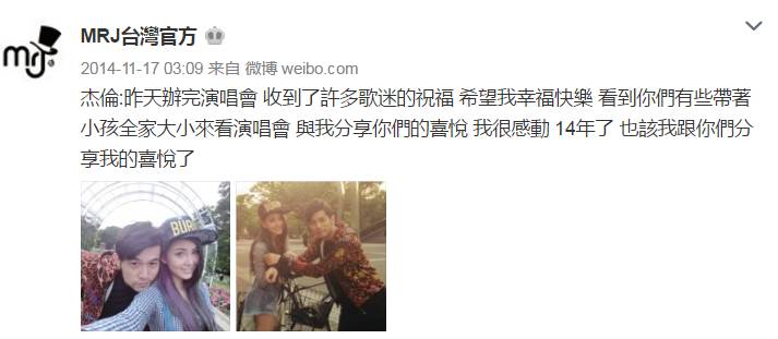 同年,蔡依林被曝出与锦荣的恋情,而周杰伦也于2014年11月在微博公开与昆凌的恋情。至此,“双J恋”彻底成为历史。