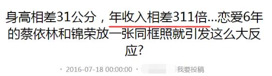 况且蔡依林身家外传20亿台币(约合人民币4.3亿元),而锦荣的收入和蔡依林相差311倍...