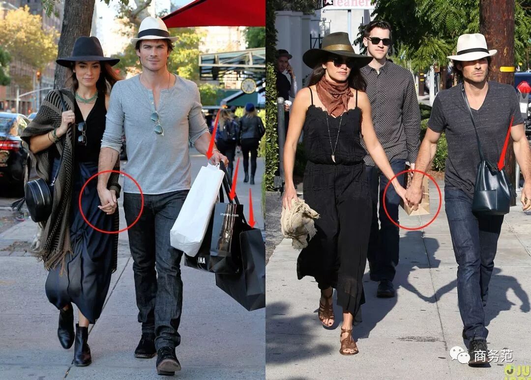 当然有些男生属于“牵手狂魔”,比如Ian Somerhalder和妻子Nikki Reed在一起时,两人的手就总是分不开,所以不管是购物袋还是单肩包统统都要“抢过来”。