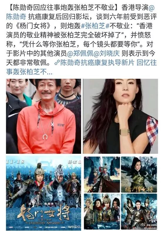不止是陈勋奇一个人说她不敬业、喜欢把情绪带到工作中来,早前的尔冬升、杜琪峰、郑佩佩、刘晓庆、刘德华都有说她,向华强夫妻更是发出永不录用的禁令。