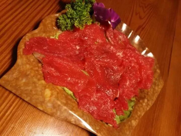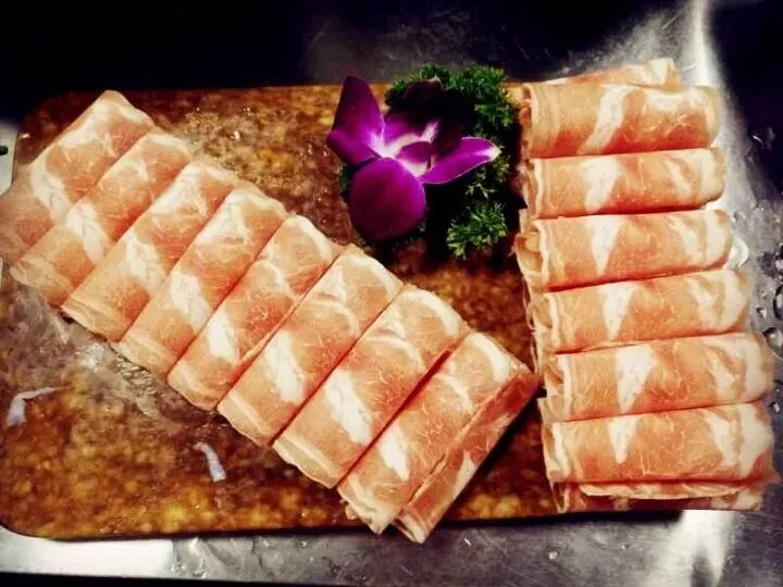 精选草原羔羊肉,店家每天准备新鲜羊肉切片,片薄如纸,羊肉细嫩,没有一丁点儿膻味呢~将牛羊肉等食物放入鼎中煮熟分食,这就是火锅的萌芽。