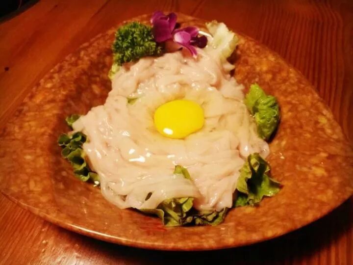 滑溜溜的鸭肠为什么要放一个蛋黄进去呢?当然是新吃法啦!爽滑脆口的鸭肠表层被蛋黄液包裹,经过涮煮后口感更劲道,同时还有一丝软糯的口感,值得一试!
