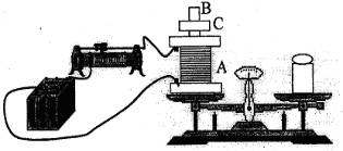 27.如图所示,A为电磁铁,B为铁芯,C为套在铁芯B上的绝缘磁环。现将A、B、C放置在天平的左盘上,当A中通有电流I时,C悬停在空中,天平保持平衡。当增大A中电流时,绝缘磁环C将向上运动。在绝缘磁环C上升到最高点的过程中,若不考虑摩擦及空气阻力,则下列描述正确的是:[ ]