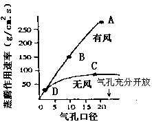 29.右图中表示在有风和无风的两种条件下,蒸腾速率与气孔大小之间的关系。在图中哪一点蒸腾作用与是否有风无关( )