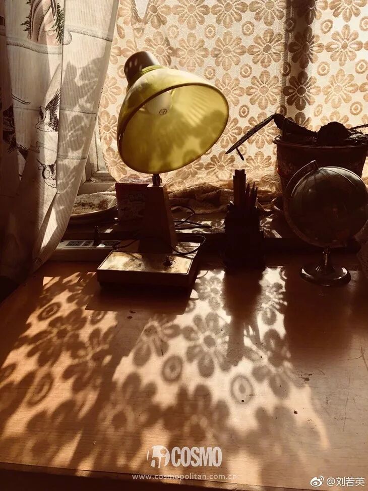再来看看奶茶的书桌,复古的感觉充满回忆。虽然镂空的窗帘写满了奶奶感,不过当阳关洒在桌面上,氛围我要毫不犹豫地给个100分。