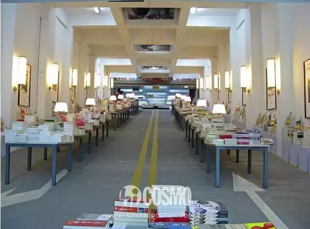 书店原本是一个地下车库,设计师因地制宜,入口处甚至还保留着原来停车场部分的设计。店内中央呈现斜坡道路,中间还有黄线标示,时刻提醒着这个空间的过去。虽然少了几分文艺风,但是酷酷的工业感应该也能戳中一些人的G点吧!