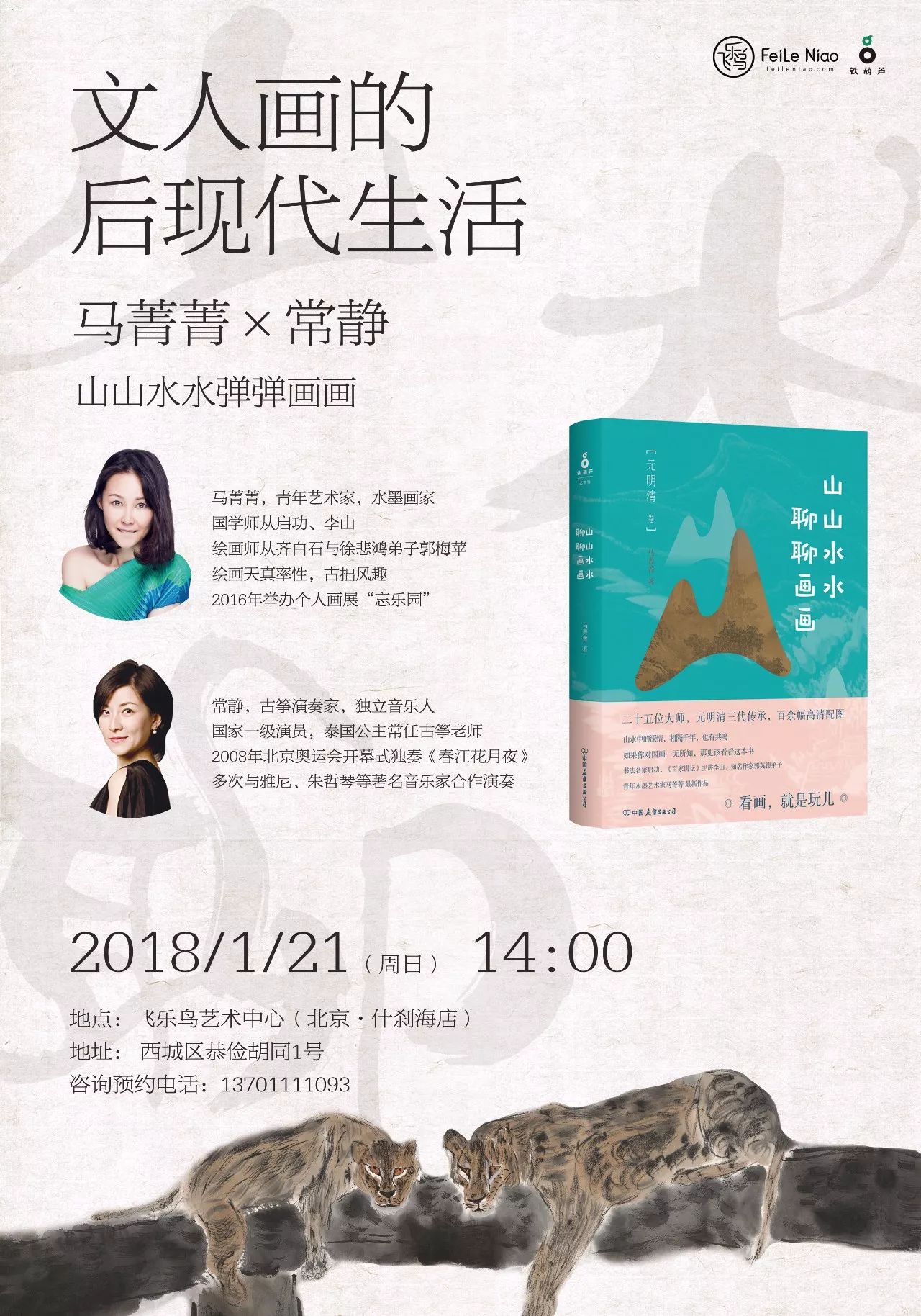 文人画的后现代生活——马菁菁×常静,本周日相约飞乐鸟艺术中心·北京什刹海店,与你一起山山水水弹弹画画。