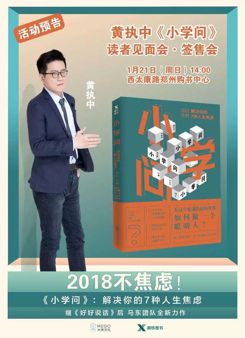 2018不焦虑马东团队《小学问》新书签售会【郑州站】,【天津站】。