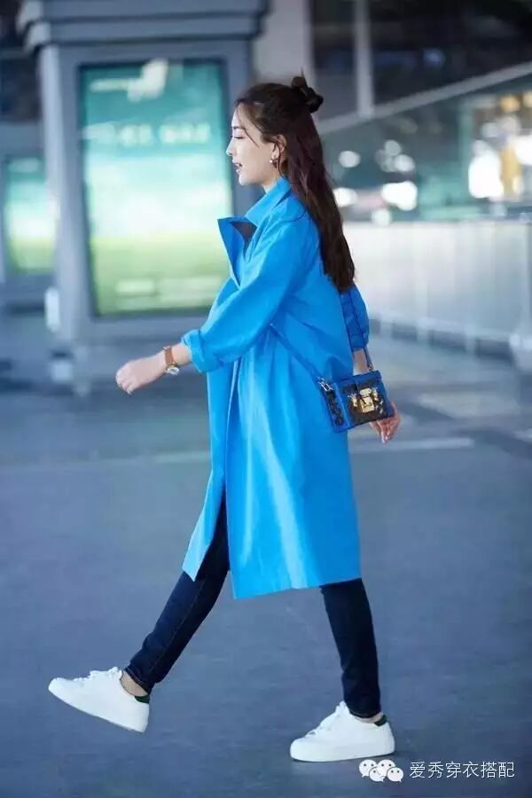 大幂幂的好闺蜜唐嫣的机场装也十分青春,而且似乎也很喜欢牛仔装呢,但是肩上的LV包包却难掩成熟女人的气息。